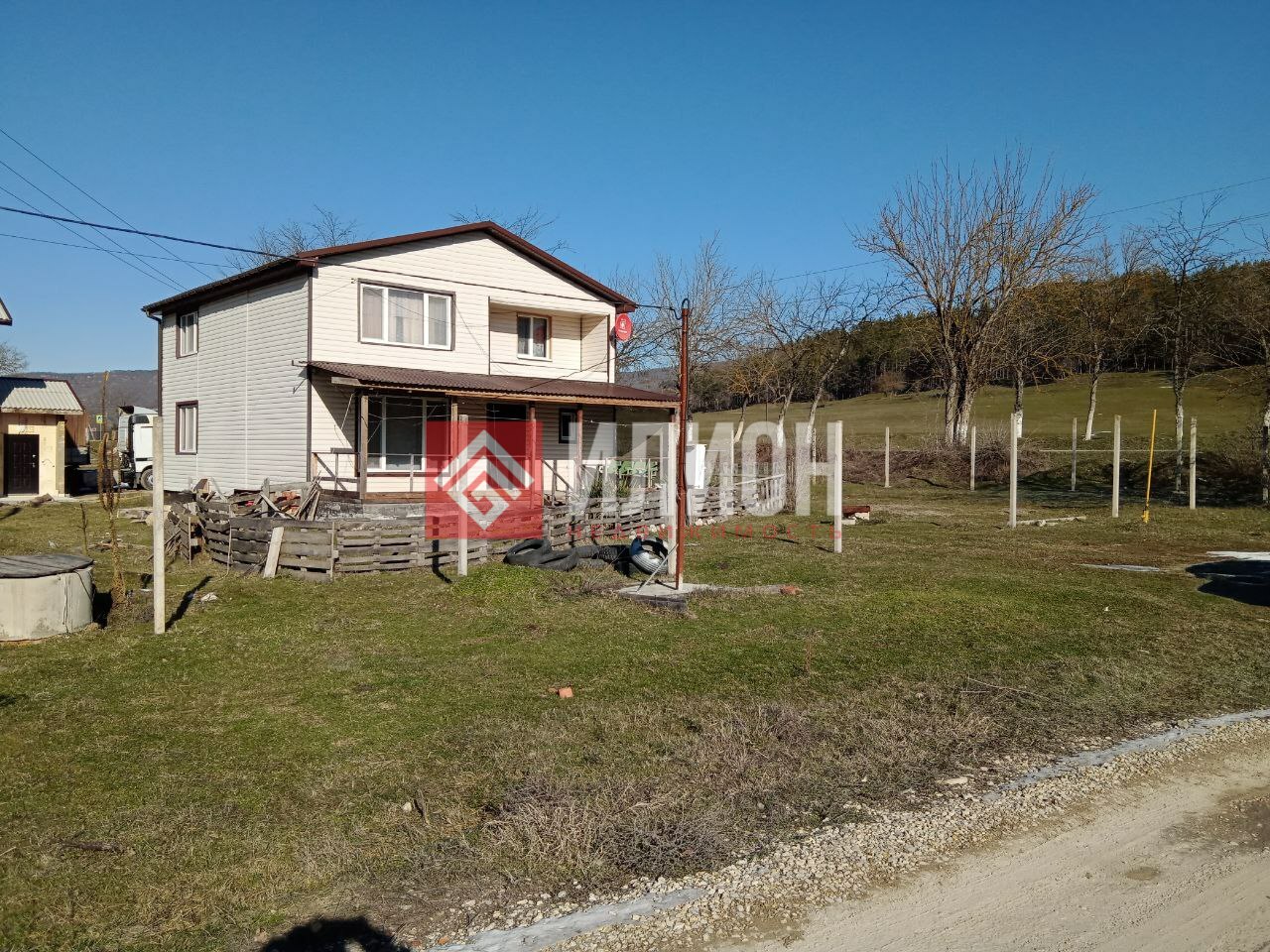 Хороший подъезд. Большая парковка возле участка.
