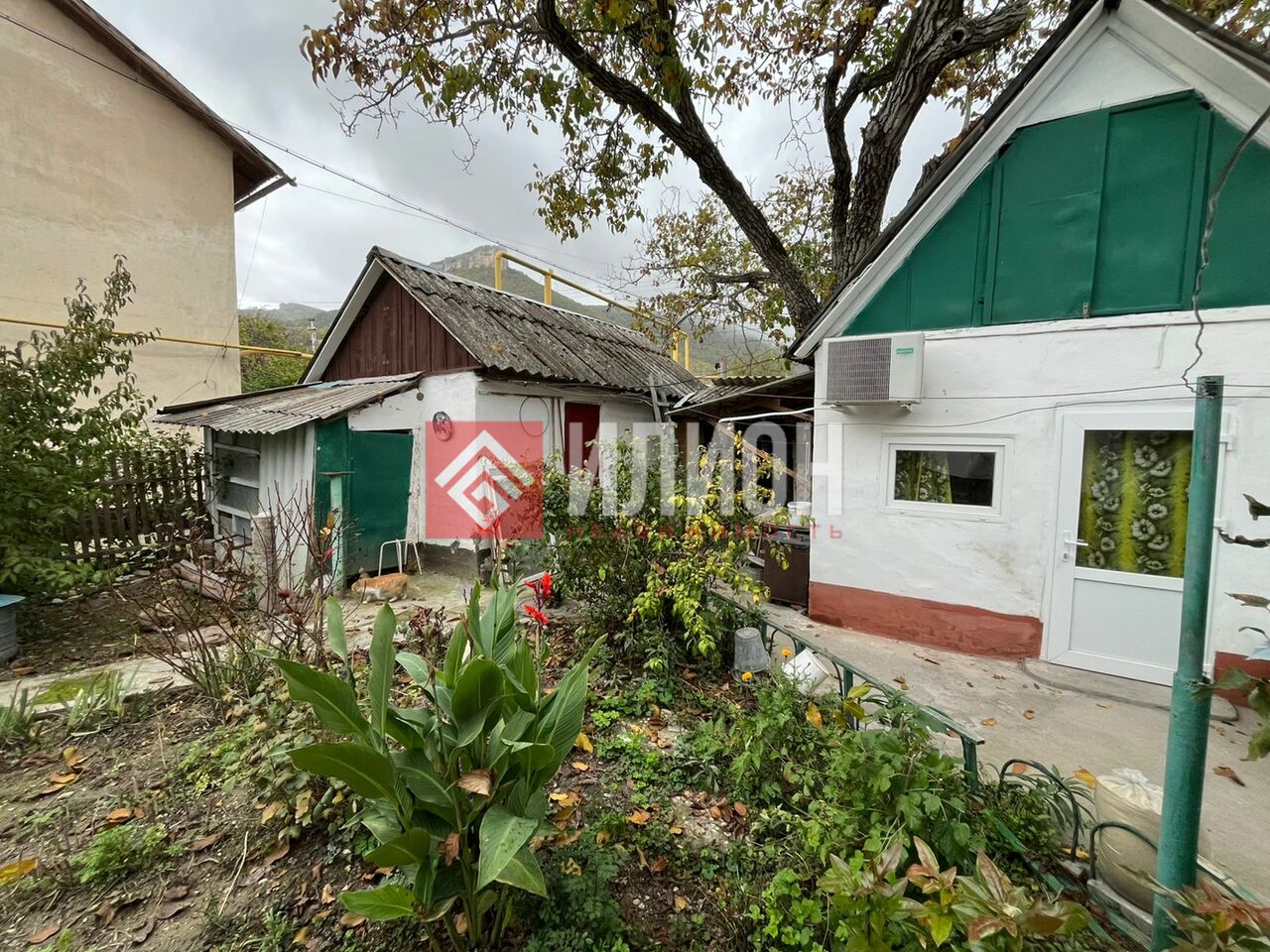 На участке помимо дома есть капитальный гараж, капитальная летняя кухня с котельной. Под домом сухой большой подвал и винный погреб. Плодовые деревья, огромный грецкий орех, парковочное место во дворе, вид на горы с террасы с камином.