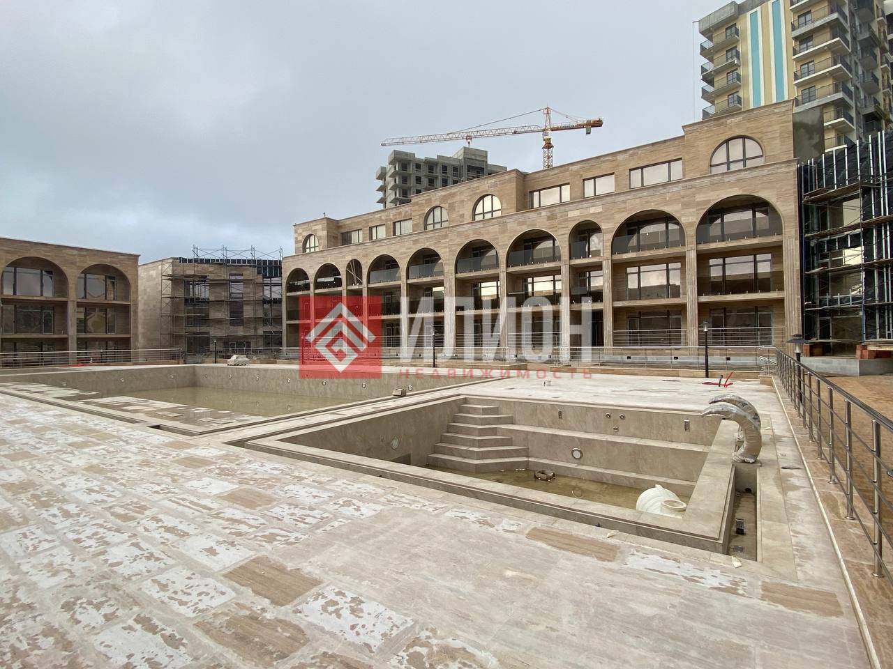 Архитектура и дизайн: комплекс спроектирован итальянскими и московскими архитекторами в средиземноморском стиле с арочными решениями и облицовкой натуральным травертином.
