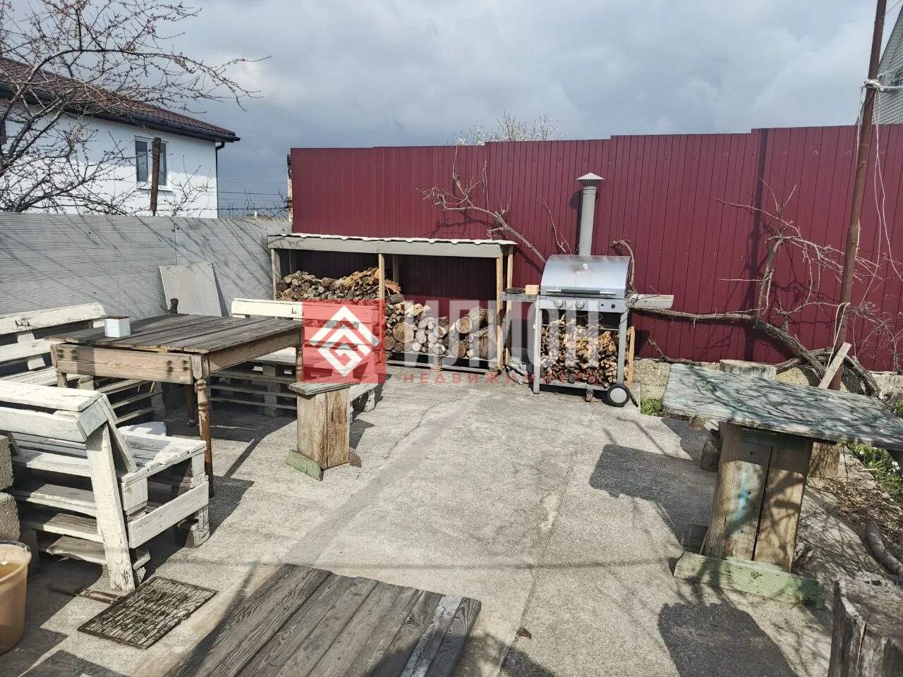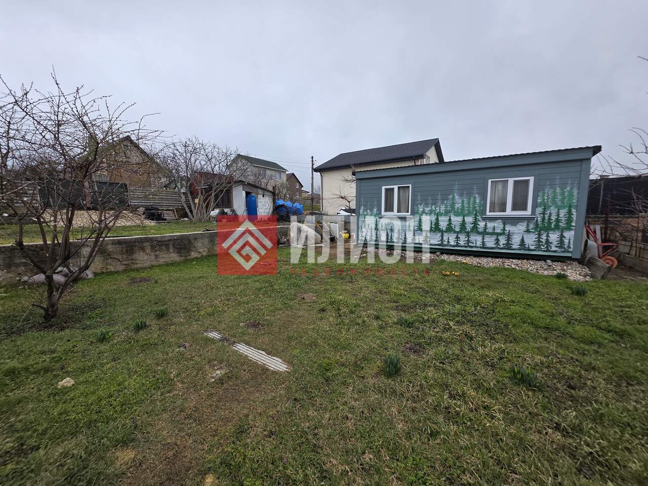 На участке есть ёмкость для воды 5.5 кубов, мангальная зона с дровницей и местом для отдыха. Под мангальной зоной оборудован погреб высотой 2,40 и площадью 18 кв.м.