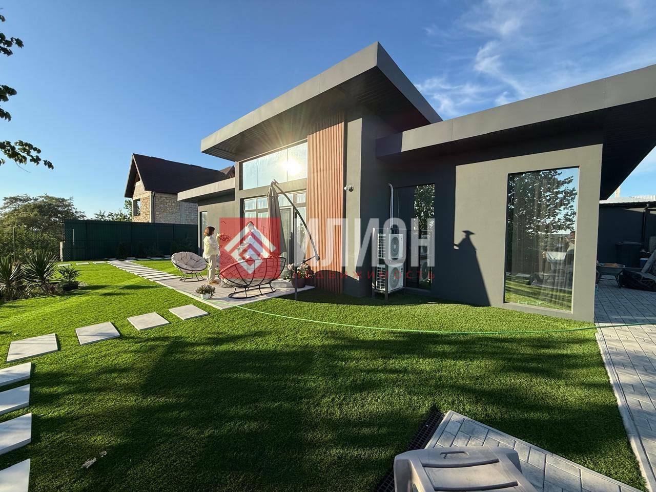 - Дом 120 м², стиль хайтек, ландшафтный дизайн, двухуровневое расположение участка.