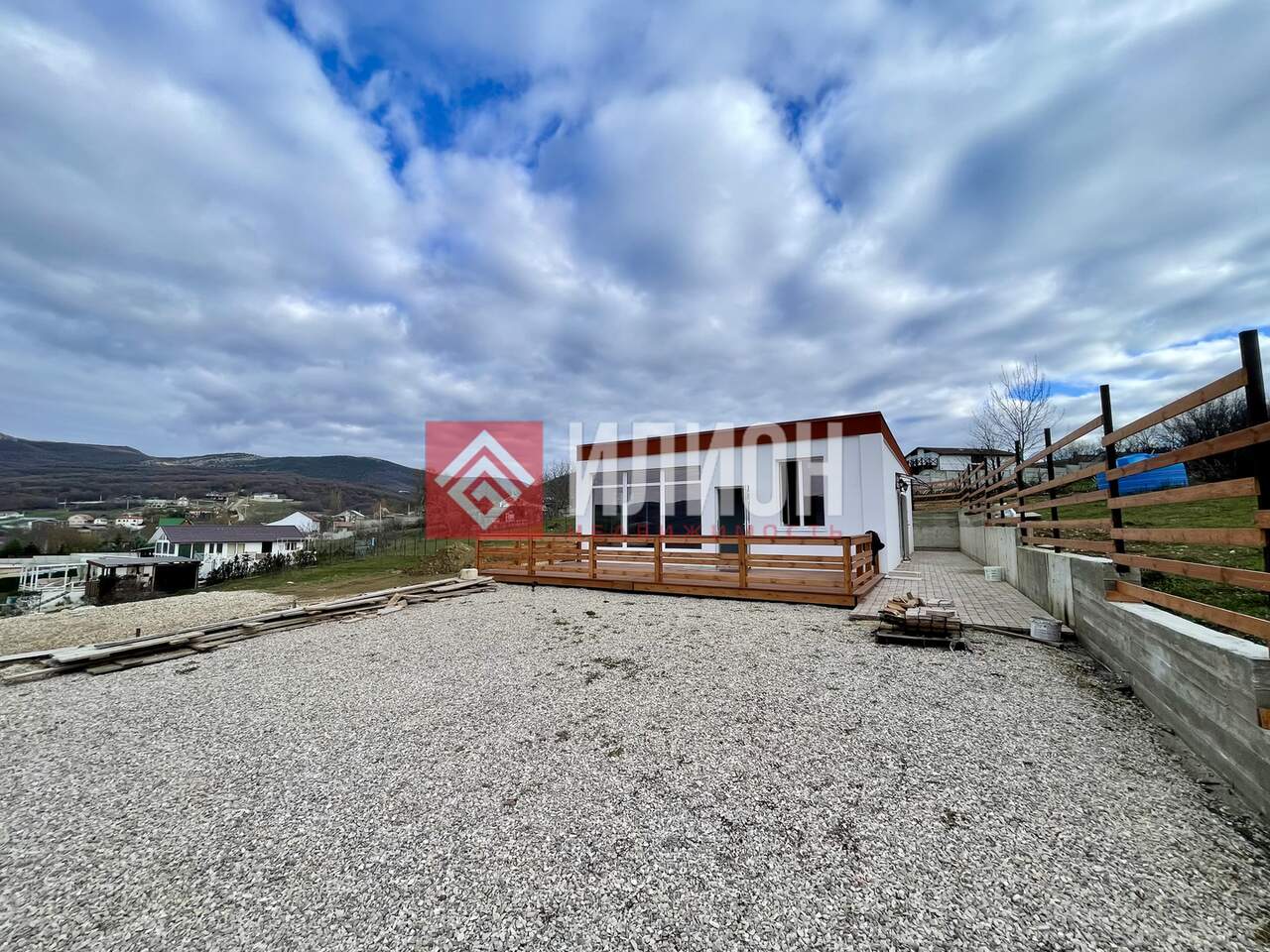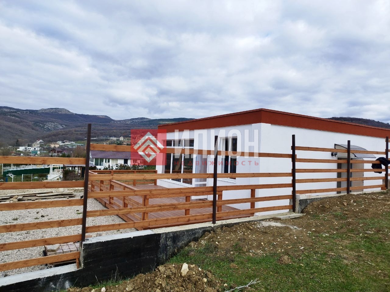 По периметру участка возведена железобетонная подпорная стена, обеспечивающая дополнительную безопасность и устойчивость конструкции.