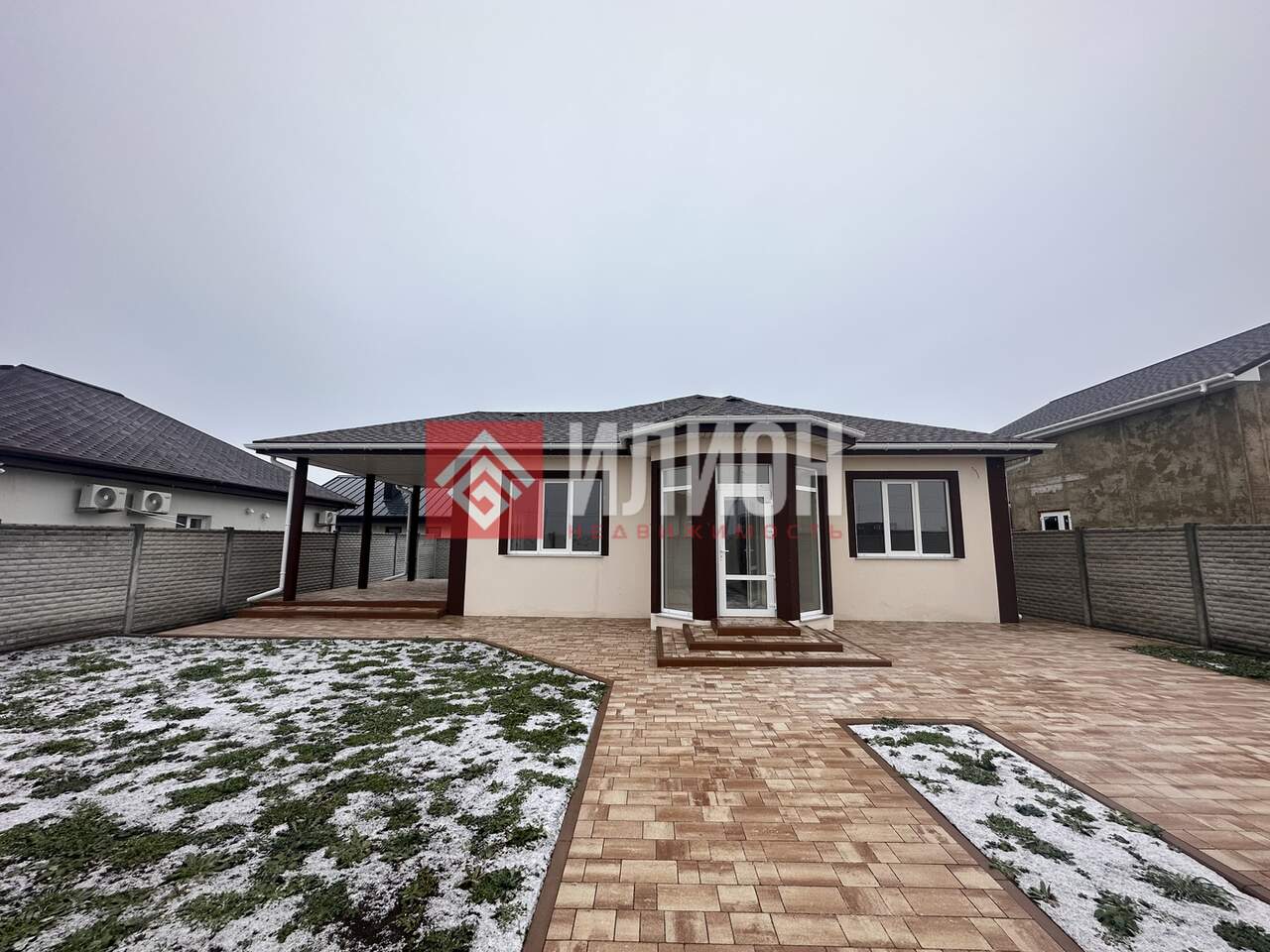 - Территория облагорожена плиткой, завезена плодородная земля, установлены откатные ворота и калитка. Есть парковка для автомобиля. Хорошие подъездные пути.