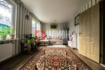 Просторный деревянный двухэтажный дом общей площадью примерно сто сорок метров. Внизу просторная гостиная, две комнаты, санузел, кладовка и закрытая терраса. Наверху ещё три спальни, отдельная комната для одежды и второй санузел. Под крышей много места для хранения вещей или отдыха. Дом построен качественно, внутри сделан хороший ремонт.
