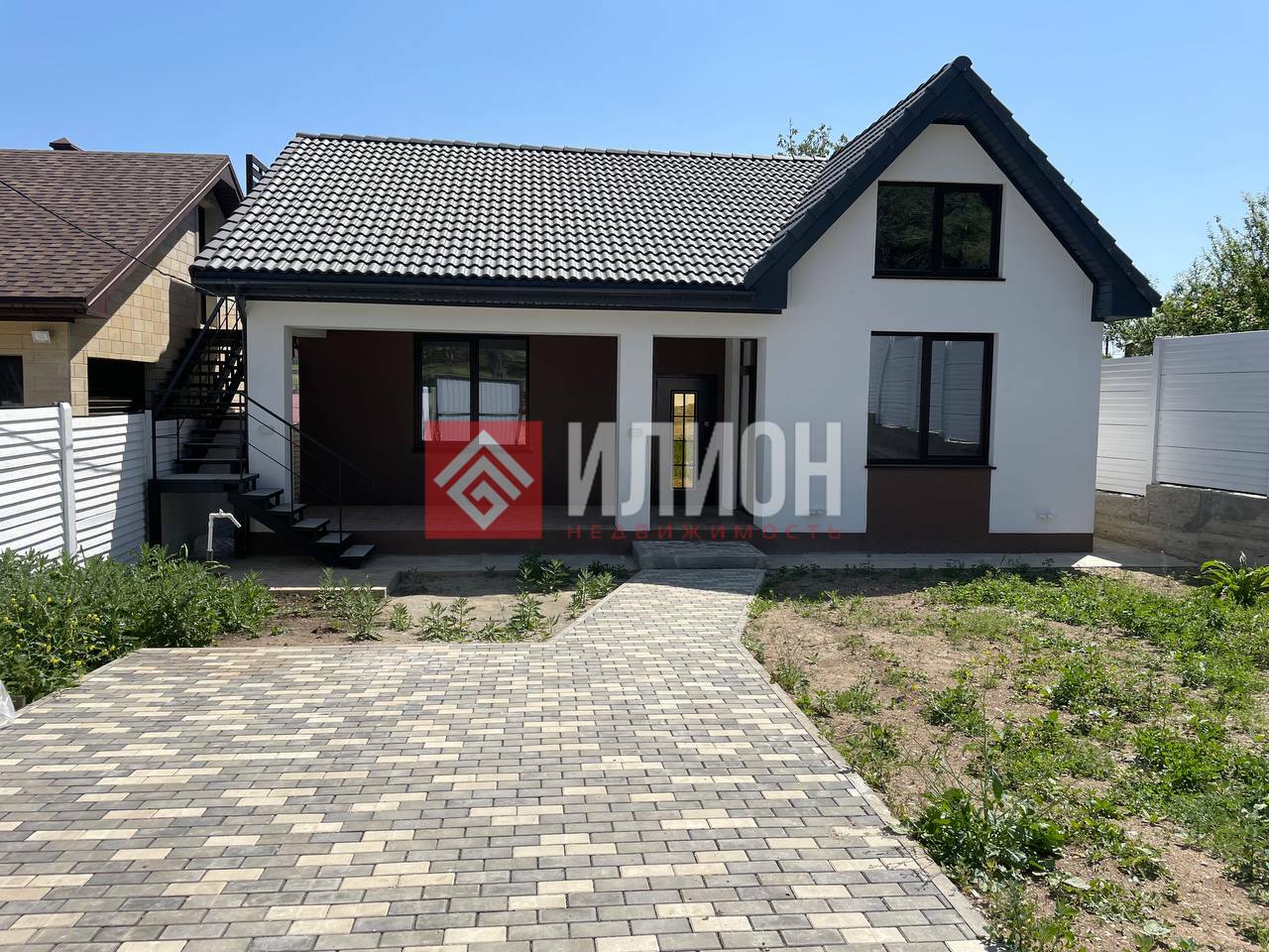 Во дворе выложена тротуарная плитка, территория освещается, установлены датчики движения. Дом введен в эксплуатацию.