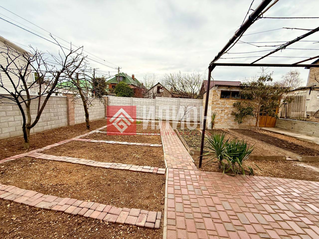 Много разновидных плодовых деревьев , 5 видов винограда, уже посажен картофель, лук и морковь, клубника!