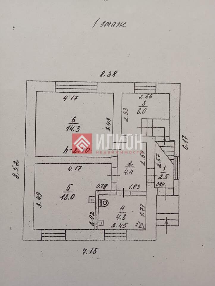 - 1-й этаж: кухня, санузел, гостиная, с теплым полом