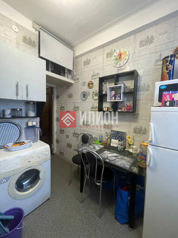 В комнате есть небольшой встроенный шкаф-ниша для хранения вещей, а на кухне встроенная антресоль.