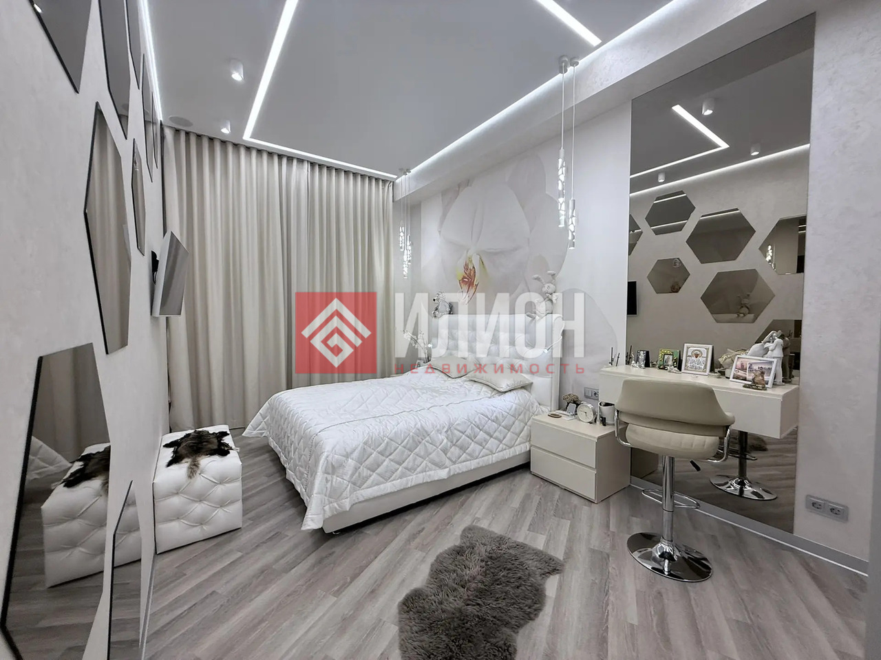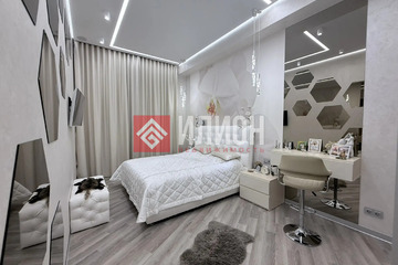 На стенах декор штукатурка шелк, Современная техника, мебель под заказ люкс класса, 18 групп света, електро карнизы на пультах управления, домофон с экраном, система очистки воды и датчики отключения воды, в случае протечки, в каждой комнате свой пульт управления теплыми полами и дисплеем, Акустическая система встроенная в потолок в каждой комнате.