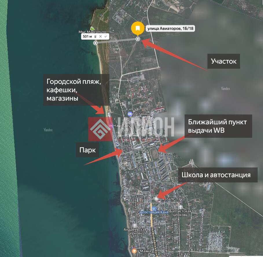 - Расположение: всего 500 метров до моря — удобный пеший доступ. В пешей доступности магазины, пункты выдачи Wildberries, школа.