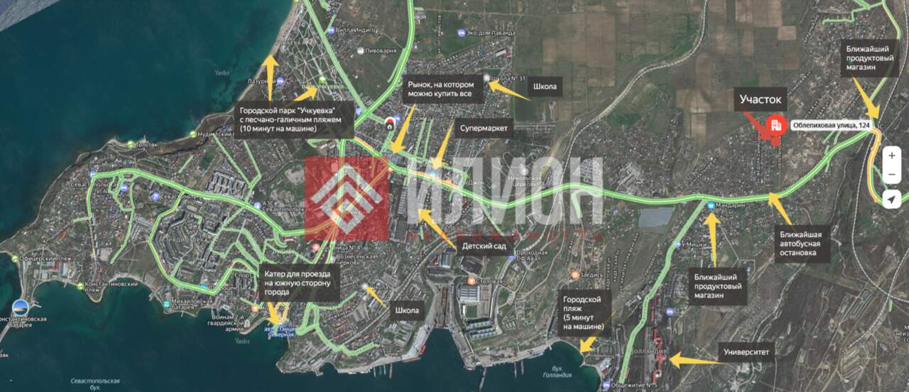 - Близость к развлечениям и отдыху: ~10 минут на машине до парка и пляжей Учкуевка (4 остановки на автобусе); около 15 минут на автобусе до центра (пл. Нахимова, Арт‑бухта). Удобное сообщение с паромными и катерными маршрутами от пл. Захарова.