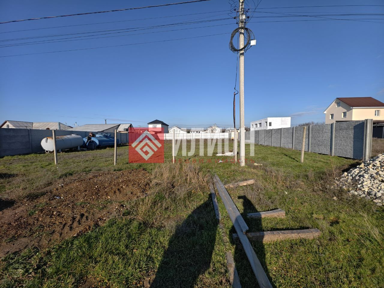 Продается участок идеально ровный, огорожен с трёх сторон — забор по границе. Отличная подготовка к строительству: