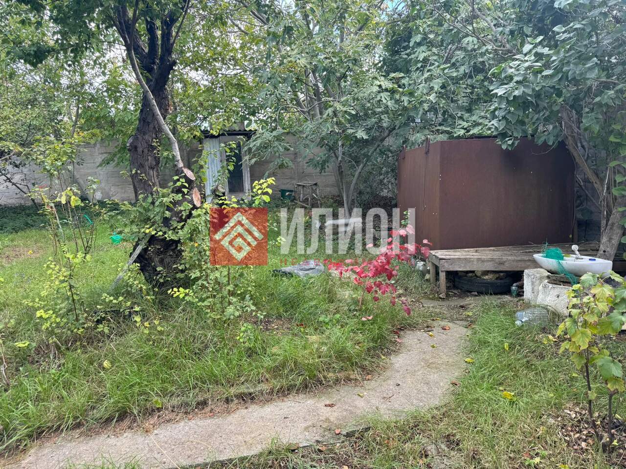 -На территории растут садовые деревья, есть емкость для воды — подача кооперативной воды дважды в неделю.