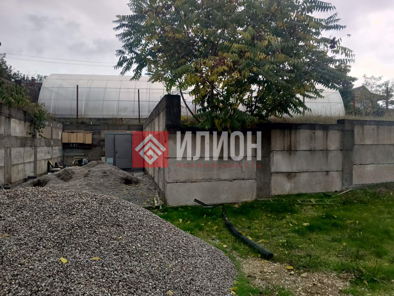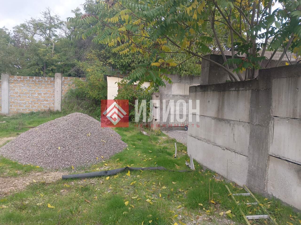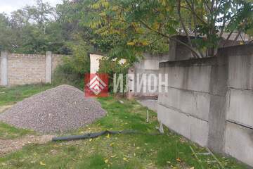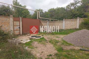 Участок прямоугольной формы. Двухуровневый. Каменный забор с откатными воротами. Начато строительство гаража. Выкопан септик.