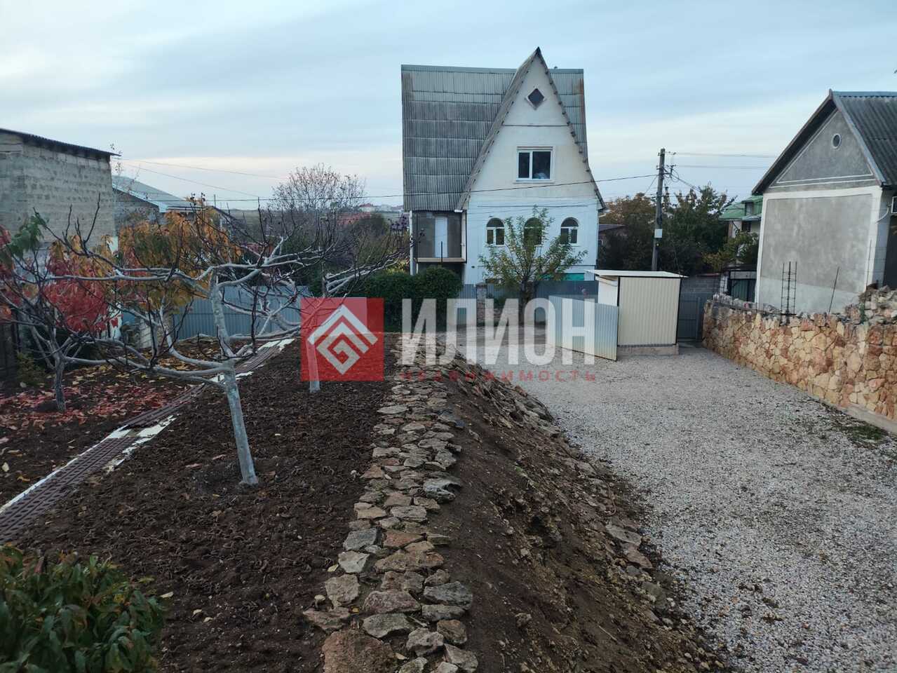 - Ухоженный участок с террасами и декоративной подпорной стеной.