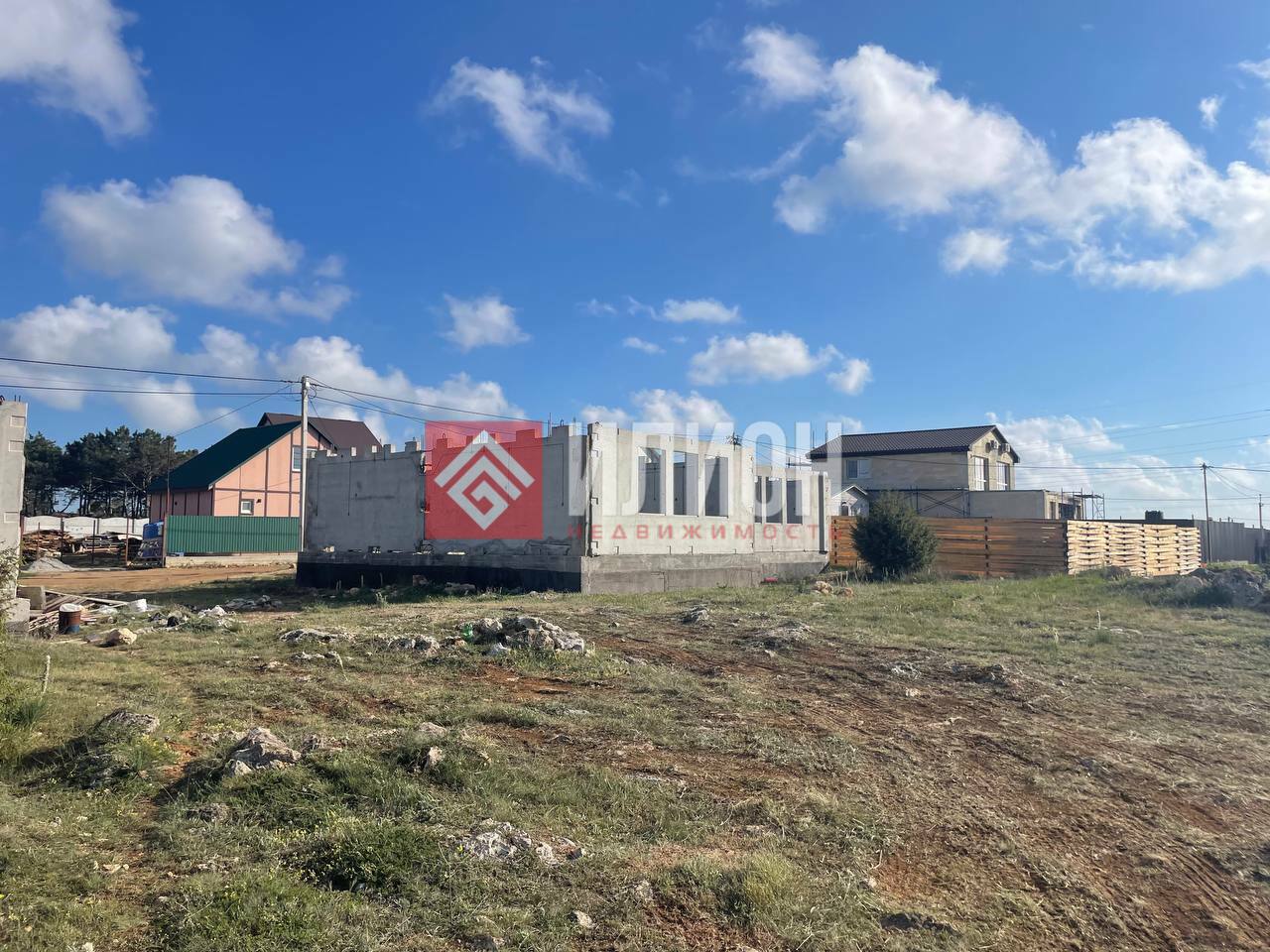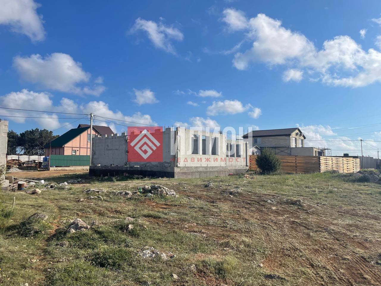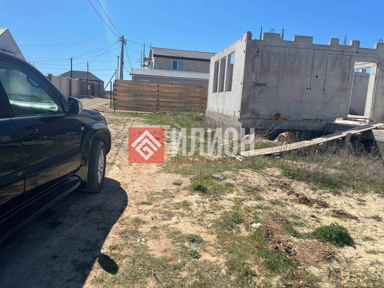 В продаже участок с подведёнными коммуникациями и объектом незавершённого строительства.